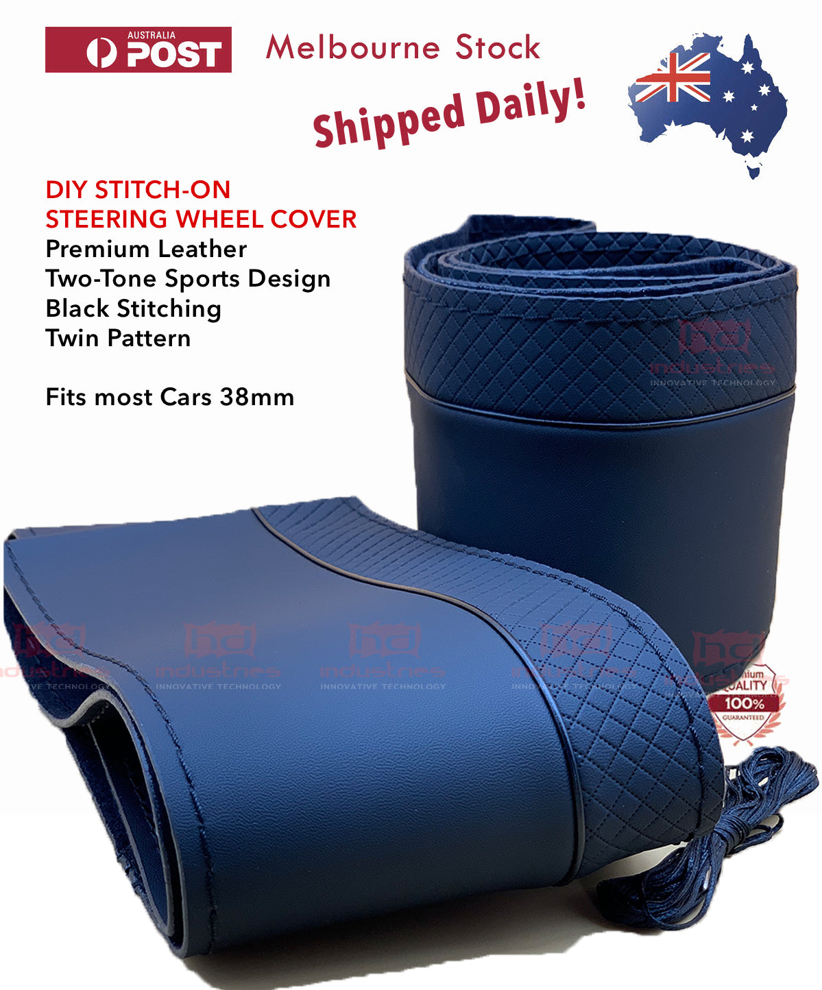 Black Leather Steering Wheel Cover- Stitch-on black thread + Two Tone Pattern DIY