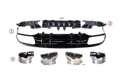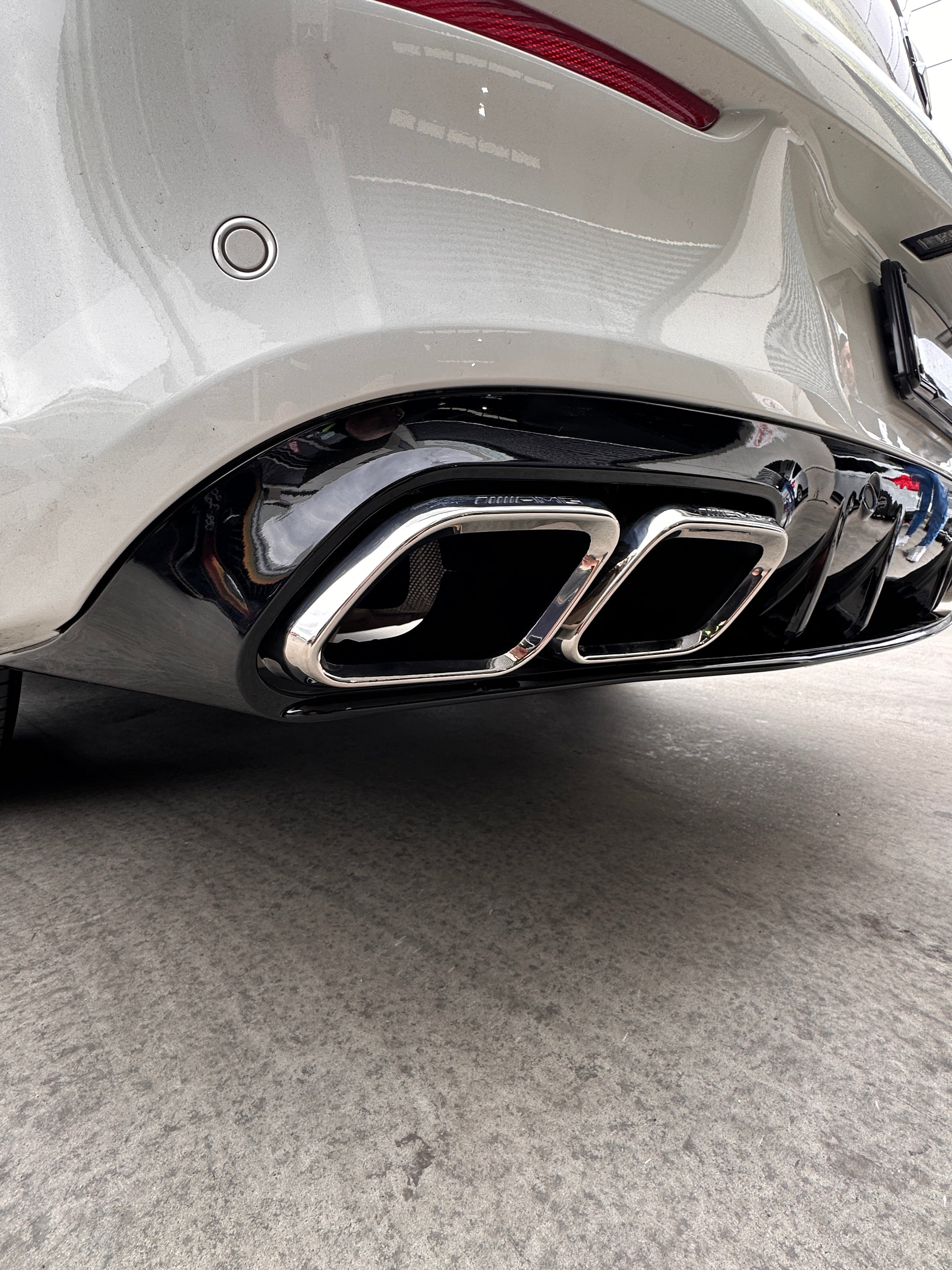 C63s FACELIFT Diffuser Kit for COUPE - this includes the bottom splitter and larger exhuast tips. Tips are available in Chrome or Black.
