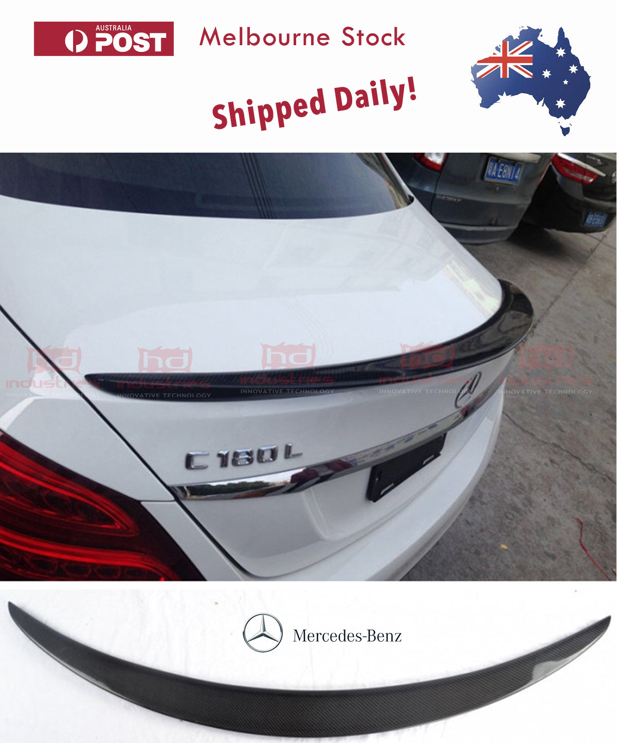 Complete Kit Includes: Rear ABS MERCEDES 'SPORT' Boot Spoiler with IN GLOSS BLACK