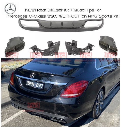 This Rear Diffuser Kit is the perfect addition to your Mercedes-Benz C-Class W205 Classic or Avantgarde model. It is designed to suit any W205 C200, C250, C300, or C220D without an AMG Kit, giving you the opportunity to upgrade to a more aggressive look without having to change the rear bumper bar.